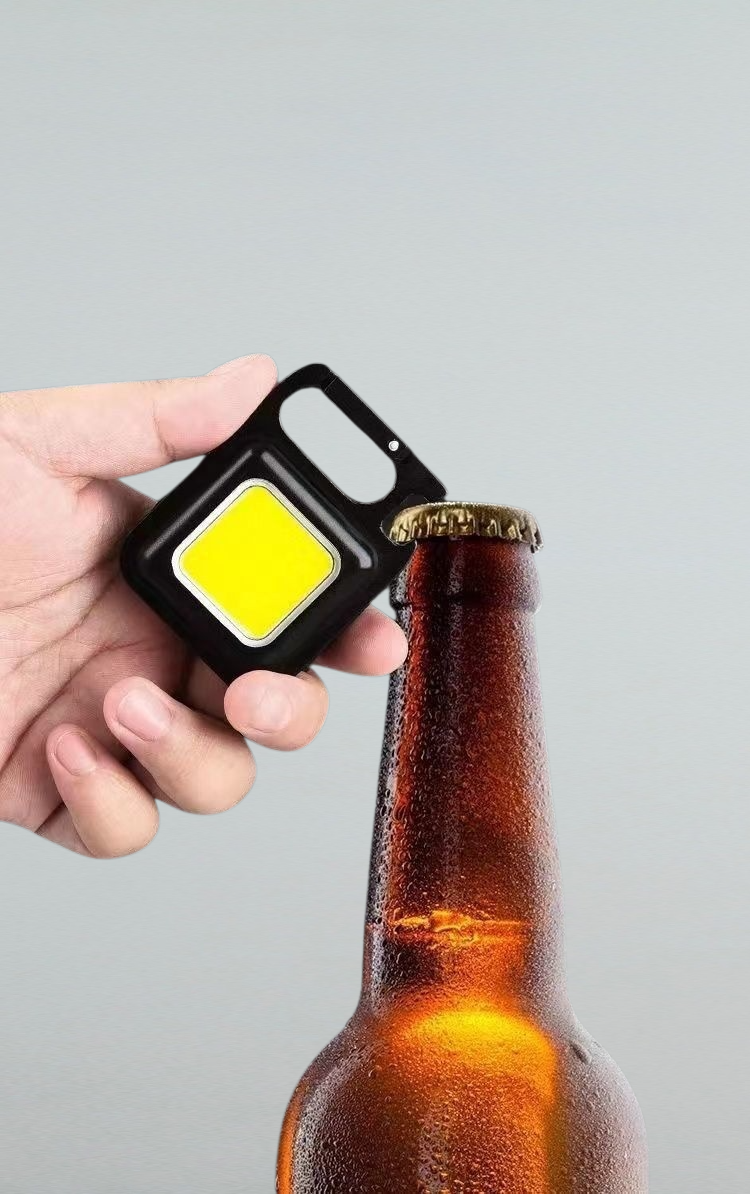 コンパクトで持ち運び便利な充電式キャンプライト。キーホルダー付き多機能設計。屋外や緊急時に最適な高輝度ミニ懐中電灯。